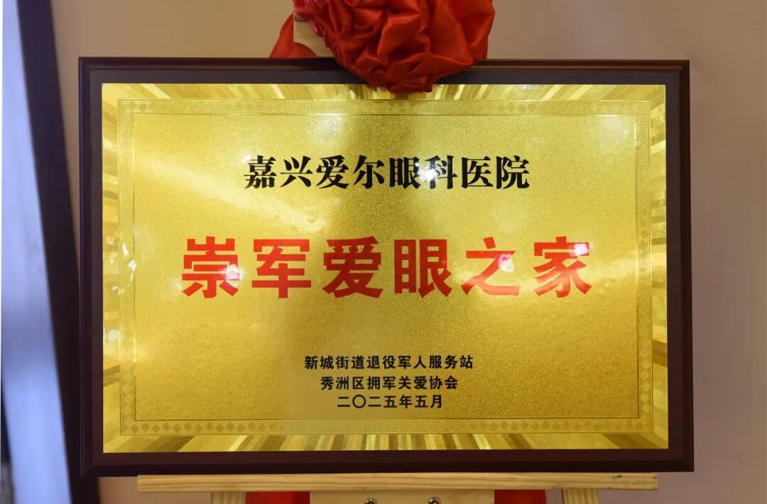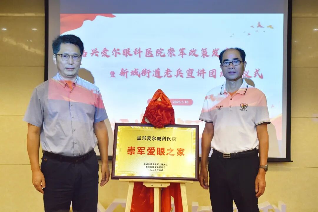 最后,秀洲区拥军关爱协会领导徐锡华、嘉兴爱尔眼医院院长张民军上台,为“崇军爱眼之家”正式揭牌。“崇军爱眼之家”是一项关爱退役军人眼健康的暖心工程,也是社会力量尊军崇军的重要体现。